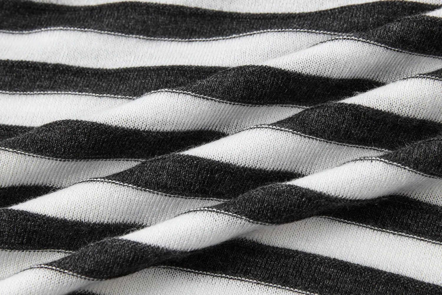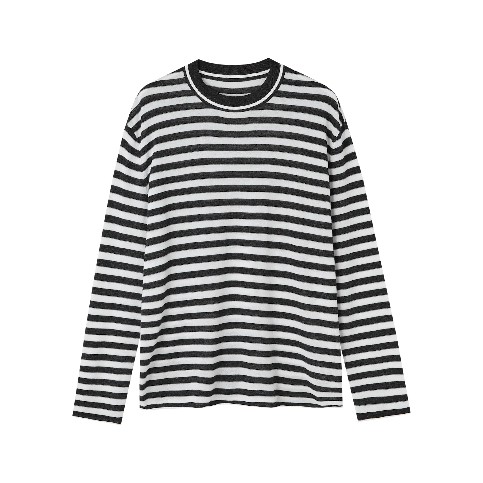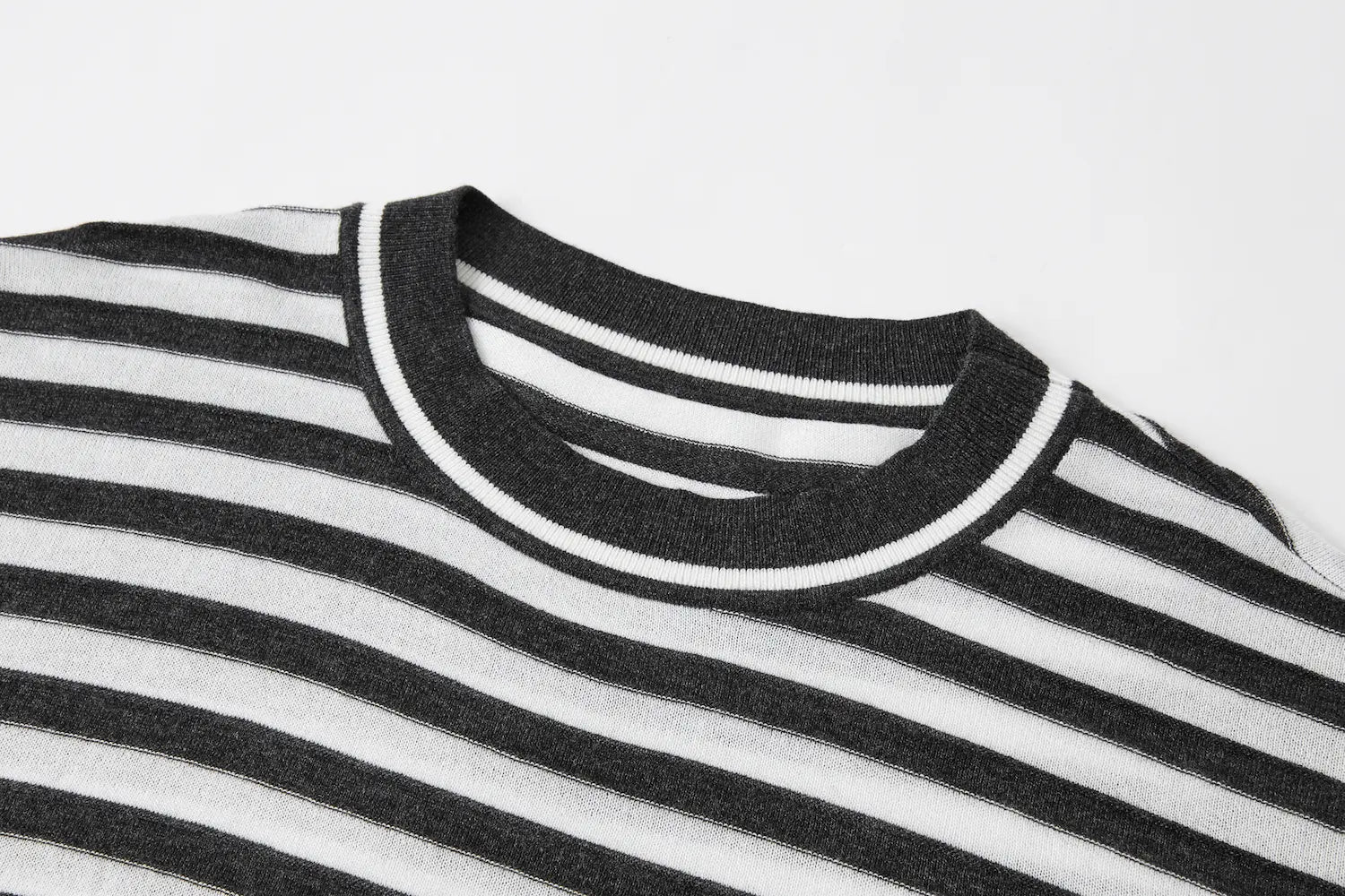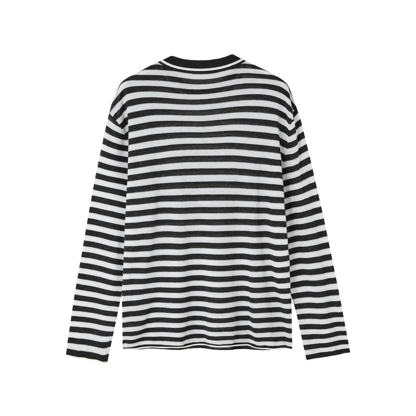 The classic crew neck and timeless black-and-white stripes create a versatile look, making it an essential piece for both casual wear and office-ready outfits. With its lightweight yet cozy texture, this sweater transitions seamlessly from cool mornings to mild afternoons, ensuring comfort without sacrificing style.