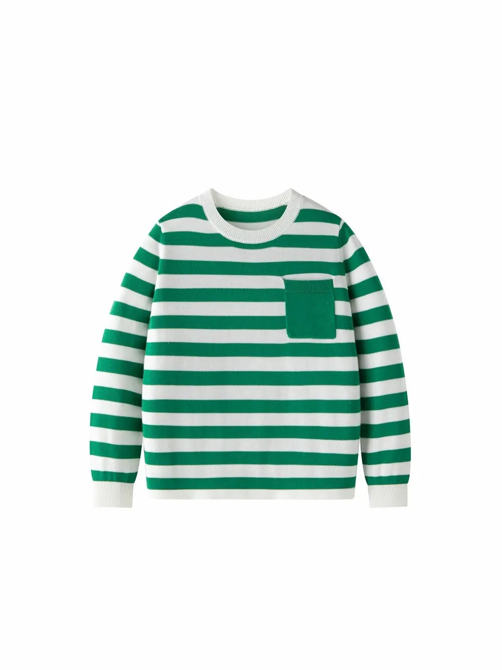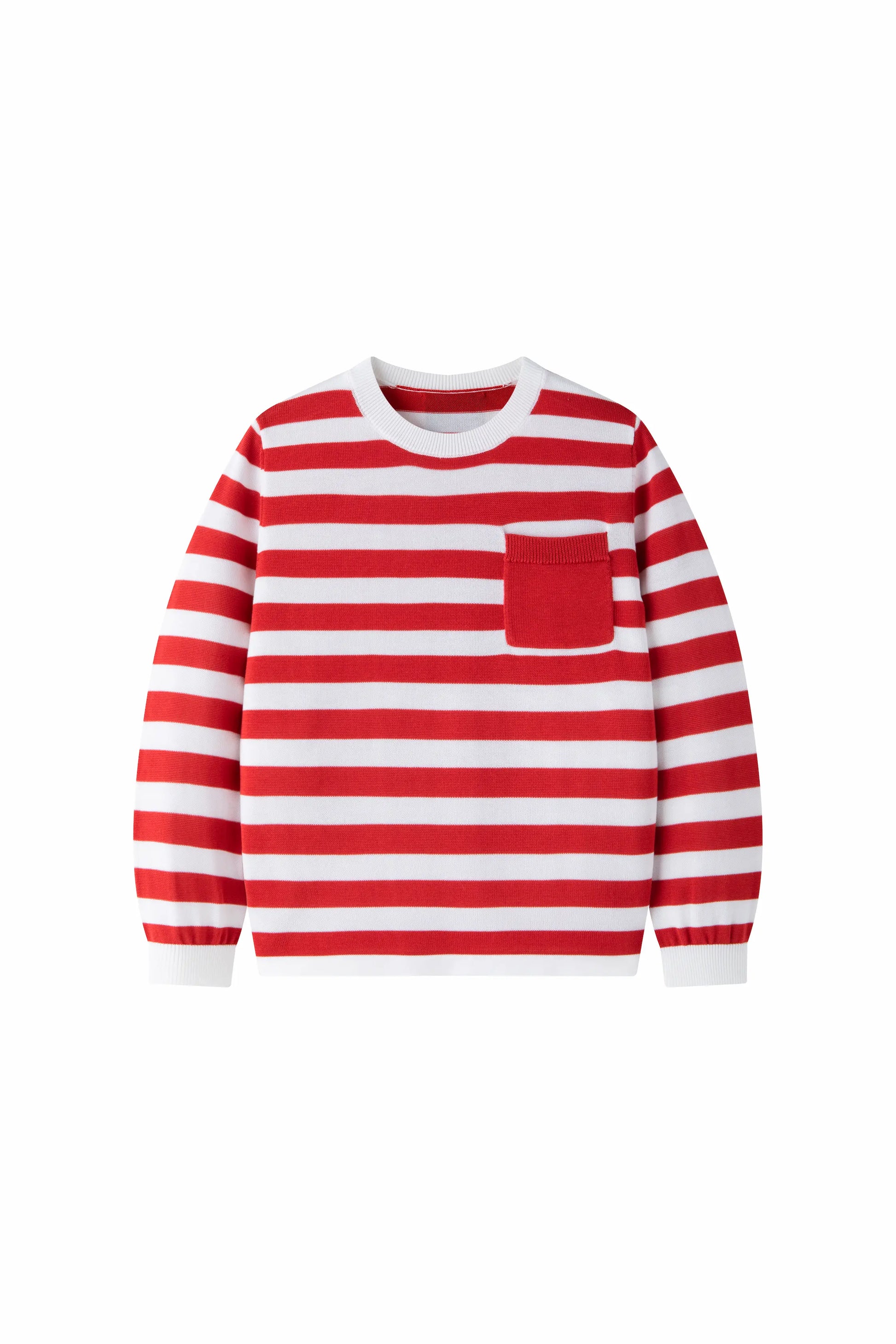 This classic red and white striped sweater is crafted from 100% lyocell, a sustainable plant-based fiber known for its softness and breathability. Designed with a playful chest pocket, it adds both charm and function to your child’s everyday wardrobe. Perfect for layering in colder weather or wearing on its own in the spring and fall, this sweater combines comfort, style, and eco-conscious materials—gentle on delicate skin and kind to the planet.