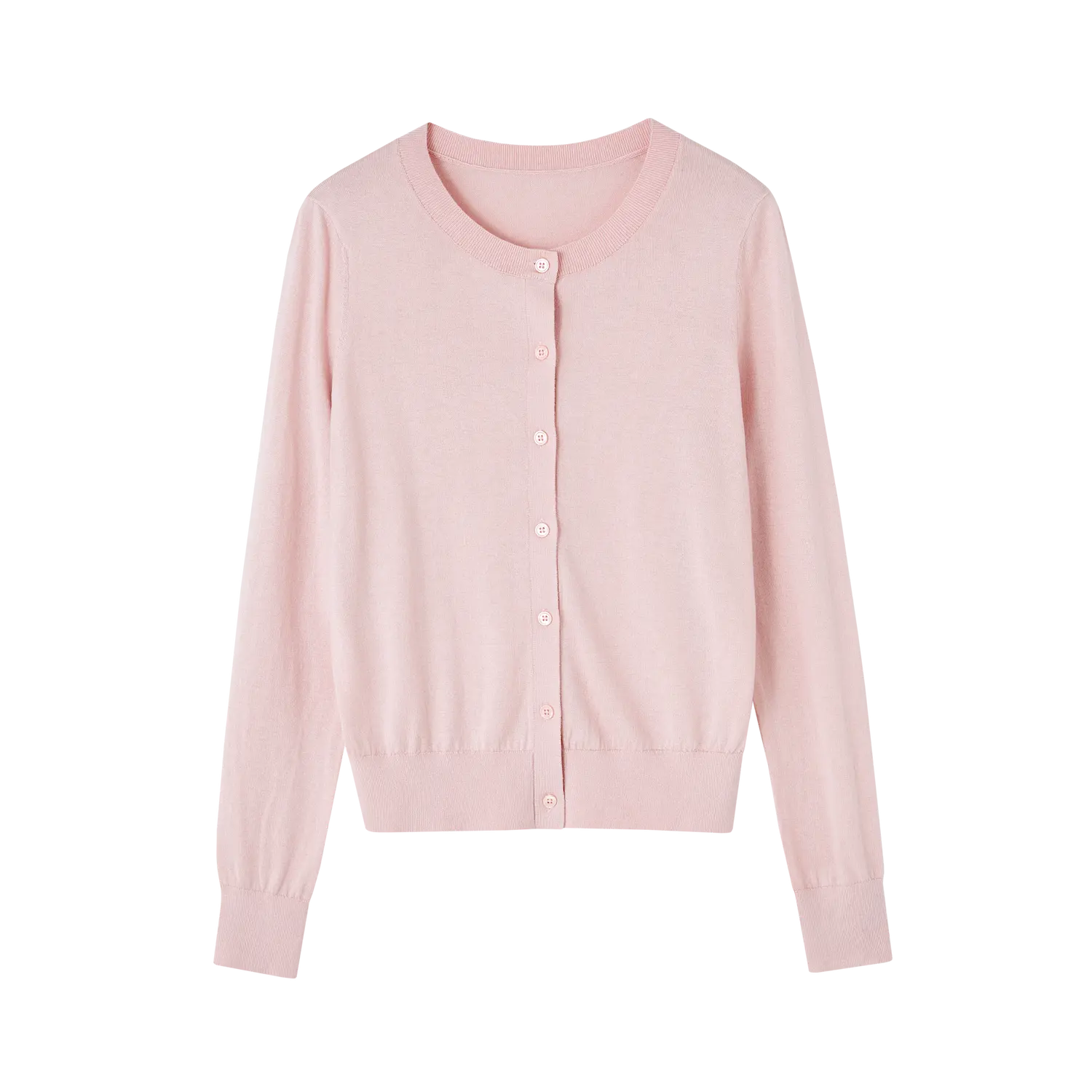 Designed with a classic crew neckline and button-up front, it’s versatile enough to pair with skirts, dresses, or trousers. Its lightweight knit makes it breathable for transitional weather, while the cashmere adds cozy warmth for layering in cooler seasons.